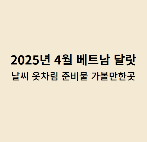 | 2025 베트남 호이안 4월 여행 꿀팁 / 날씨 / 옷차림 / 준비물 / 가 볼만한 곳 총 정리✅ (0) | 2025.03.19 |