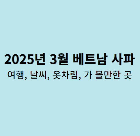 베트남 북부에 위치한 사파는 아름다운 자연경관과 이국적인 소수민족 문화를 경험할 수 있는 매력적인 여행지입니다. 3월은 사파를 방문하기에 매우 좋은 시기 중 하나로, 선선한 날씨와 더불어 푸른 계단식 논밭과 산악지대의 풍경을 감상할 수 있습니다. 이번 글에서는 2025년 3월 사파의 날씨, 여행 옷차림, 준비물 그리고 꼭 방문해야 할 명소에 대해 자세히 알아보겠습니다.