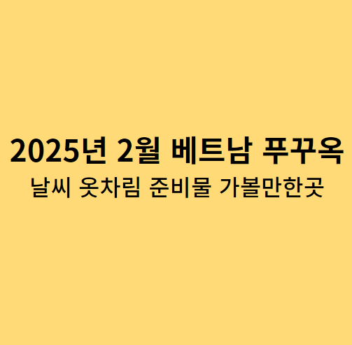 베트남 푸꾸옥은 2월에 아름다운 날씨와 함께 여행객들에게 인기 있는 휴양지입니다. 이 글에서는 2025년 2월의 푸꾸옥 날씨, 옷차림, 여행 준비물, 그리고 추천 관광지 3곳에 대해 자세히 알아보겠습니다.