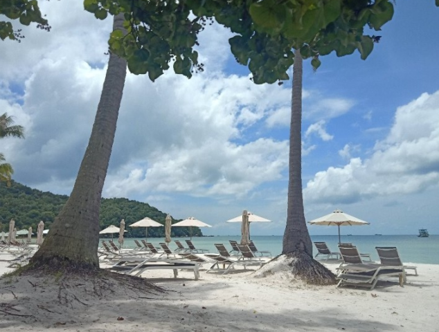 푸꾸옥에서 가장 아름다운 해변 중 하나로, 하얀 모래와 투명한 바다가 인상적입니다. 수영과 일광욕을 즐기기에 적합하며, 여유로운 분위기를 만끽할 수 있습니다.