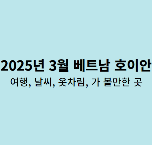 | 2025 베트남 호치민(호찌민) 3월 여행 꿀팁 / 날씨 / 옷차림 / 준비물 / 가 볼만한 곳 총 정리✅ (0) | 2025.02.18 |