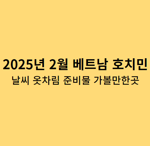 베트남 호치민은 매력적인 여행지로, 2월에 방문하면 쾌적한 날씨와 다양한 명소를 즐길 수 있습니다. 이번 글에서는 2025년 2월 호치민 날씨, 적절한 옷차림, 여행 준비물, 가 볼만한 곳 3곳에 대해 자세히 알아보겠습니다.