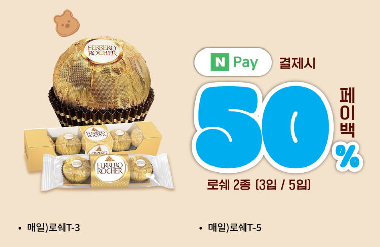 | 하나카드 | 페레로로쉐 3개 구매 시 5,000원 즉시할인 |