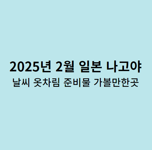 일본 나고야는 전통과 현대가 조화를 이루는 매력적인 도시로, 2월에는 여행객들에게 특별한 경험을 제공합니다. 이번 글에서는 2025년 2월 나고야의 날씨, 옷차림, 여행 준비물, 그리고 가볼 만한 명소 3곳에 대해 자세히 안내해 드리겠습니다.