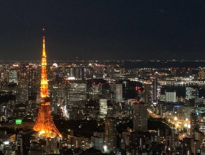 도쿄의 상징인 도쿄 타워는 겨울철 맑은 날씨 덕분에 더욱 멋진 전망을 제공합니다. 밤에는 조명이 들어와 낭만적인 분위기를 즐길 수 있습니다.