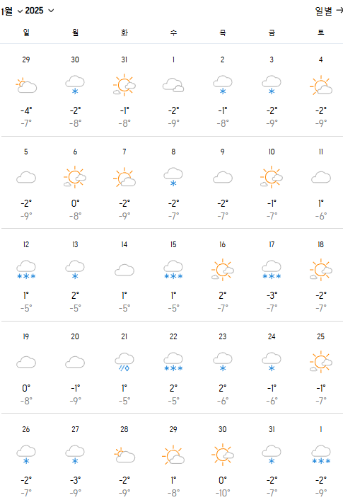 2025년 1월 일본 삿포로 날씨
