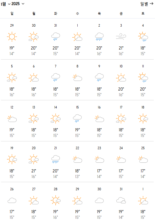 1월 15°C 20°C 17.5°C 50mm 온화하고 서늘