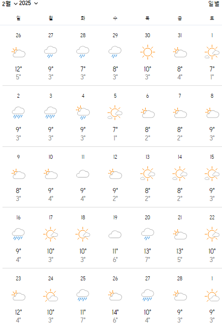 2025년 2월 일본 후쿠오카 날씨