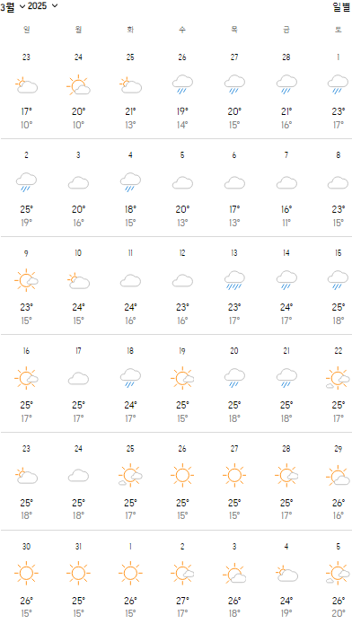 2025년 3월 광저우 여행 시 비가 많이 오나요?