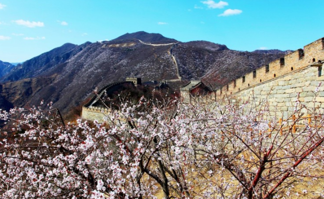 겨울의 만리장성은 맑은 하늘과 눈 덮인 산세가 어우러져 장관을 이루며, 추운 날씨 덕분에 방문객이 비교적 적어 한적한 분위기 속에서 관광을 즐길 수 있습니다.