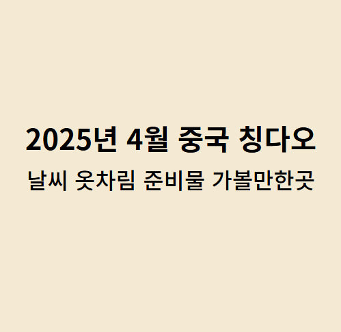 칭다오는 중국의 아름다운 해안 도시로, 4월에는 봄기운이 가득한 여행하기 좋은 시기입니다. 이번 글에서는 2025년 4월 칭다오의 날씨, 여행 시 적절한 옷차림, 필수 준비물, 그리고 꼭 방문해야 할 명소 3곳을 소개하겠습니다.