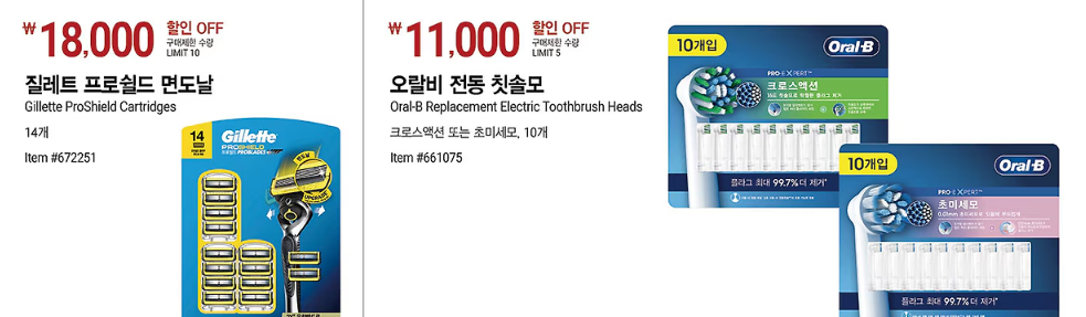 | 오랄비 전동 칫솔모 (크로스액션, 초미세모, 10개입) | 11,000원 할인 | 칫솔모 교체 주기가 짧은 분께 추천 |