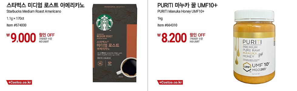 코스트코에서 집에서 꼭 필요한 식료품을 할인가로 만나보세요. 스타벅스 커피부터 즉석 우동까지 다양한 제품이 준비되어 있습니다.