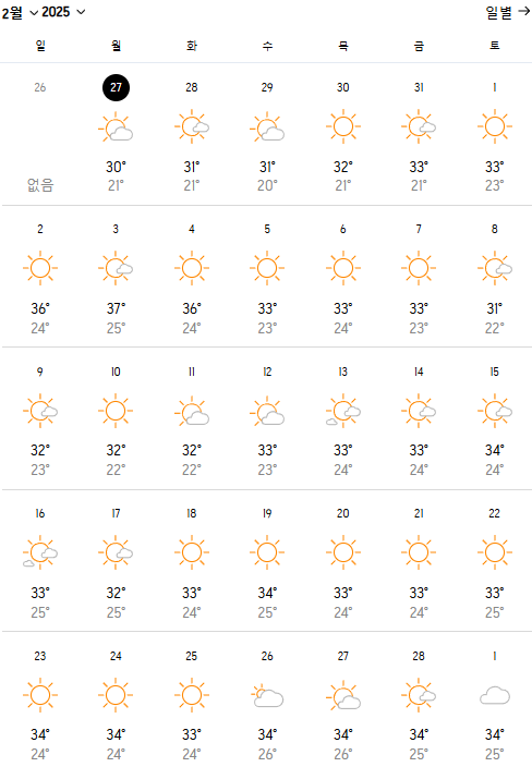 2025년 2월 태국 방콕 날씨