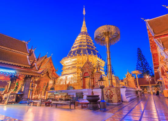 치앙마이를 대표하는 불교 사원으로, 도이수텝 산 정상에 위치하고 있습니다. 황금빛 탑이 인상적이며, 치앙마이 시내를 한눈에 내려다볼 수 있는 전망이 아름답습니다.