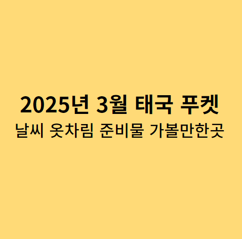 푸켓은 태국의 대표적인 여행지로, 아름다운 해변과 활기찬 야시장, 다양한 액티비티로 유명한 곳입니다. 3월은 건기 후반에 해당하여 여행하기 좋은 시기인데요. 푸켓의 3월 날씨와 옷차림, 필수 준비물, 그리고 꼭 방문해야 할 장소 3곳을 자세히 정리해보았습니다.