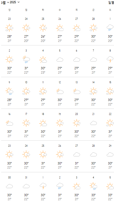 2025년 3월 필리핀 따가이따이 날씨