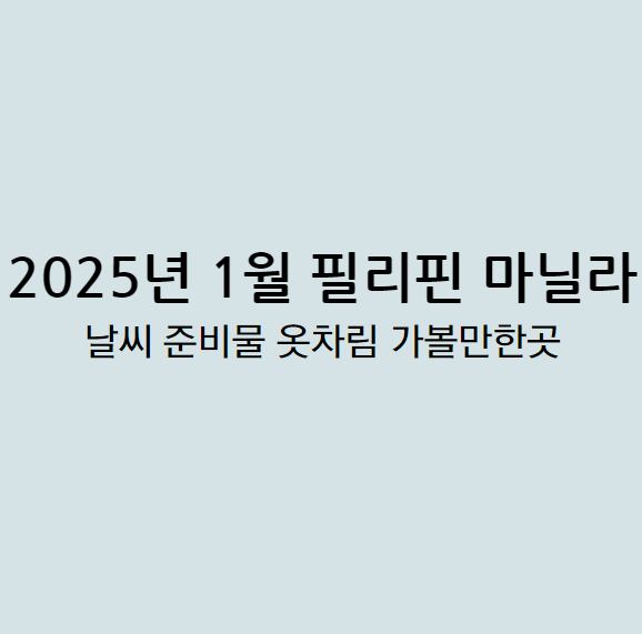 필리핀의 수도 마닐라는 아름다운 열대 기후와 다양한 명소로 매년 많은 여행자들을 끌어들이는 인기 여행지입니다. 특히 1월은 비교적 쾌적한 날씨 덕분에 관광을 즐기기에 최적의 시기입니다. 이번 포스팅에서는 2025년 1월 필리핀 마닐라의 날씨, 적합한 옷차림, 준비물, 그리고 꼭 가봐야 할 명소 3곳에 대해 자세히 안내해 드리겠습니다.
