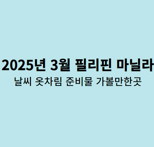 필리핀 마닐라는 따뜻한 기후와 아름다운 자연경관으로 많은 여행객들에게 사랑받는 도시입니다. 2025년 3월에 마닐라 여행을 계획하고 있다면, 날씨와 적절한 옷차림, 필수 준비물, 그리고 꼭 가볼 만한 명소를 미리 파악하는 것이 중요합니다. 이번 글에서는 2025년 3월의 마닐라 날씨와 여행 준비에 필요한 정보를 자세히 안내해 드리겠습니다.