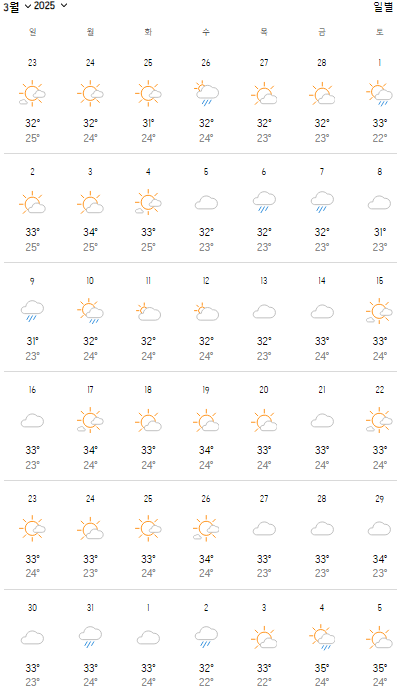 2025년 3월 필리핀 마닐라 날씨