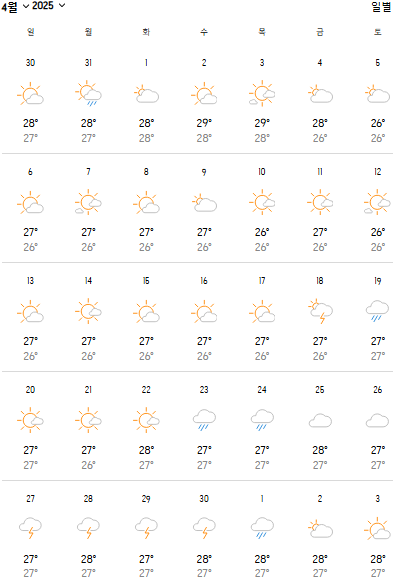 2025년 4월 필리핀 보라카이 날씨