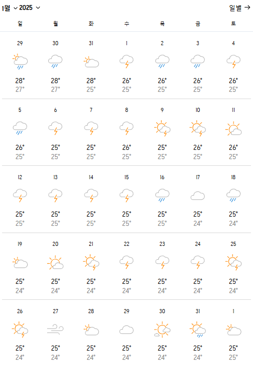 2025년 1월 필리핀 팔라완 날씨
