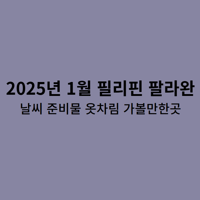 필리핀 팔라완은 천혜의 자연환경과 아름다운 풍경으로 많은 여행객들에게 사랑받는 여행지입니다. 특히 1월은 팔라완을 여행하기에 최적의 시기로, 날씨와 풍경 모두 매력적입니다. 이 글에서는 2025년 1월 필리핀 팔라완의 날씨, 옷차림, 준비물, 그리고 가볼 만한 곳 세 곳을 소개하겠습니다.