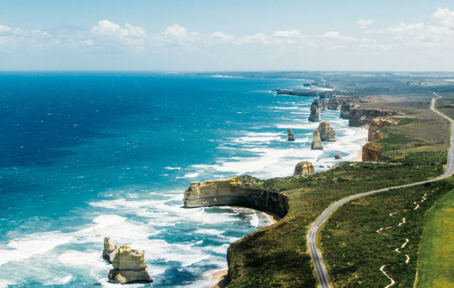 멜버른에서 차로 약 2시간 거리의 그레이트 오션 로드는 호주의 대표적인 드라이브 코스 중 하나입니다. 웅장한 해안 절경과 함께 ‘12사도 바위’로 유명하며, 자연의 경이로움을 감상할 수 있는 최고의 장소입니다.