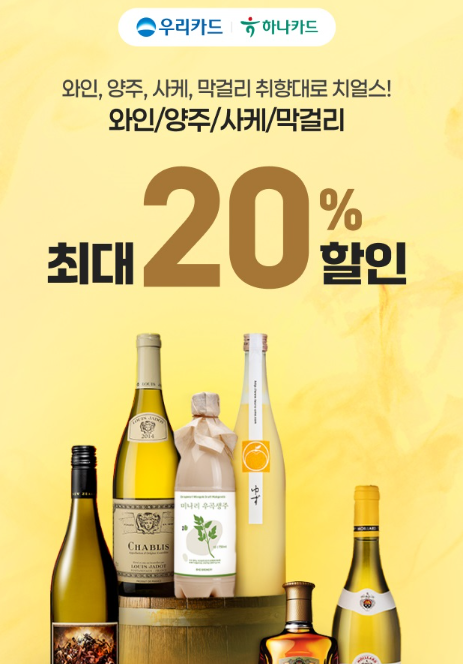| 우리카드 / 하나카드 | 20% | 와인, 양주, 사케 |