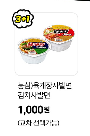 | 3+1 행사 | 육개장 사발면, 김치 사발면 |