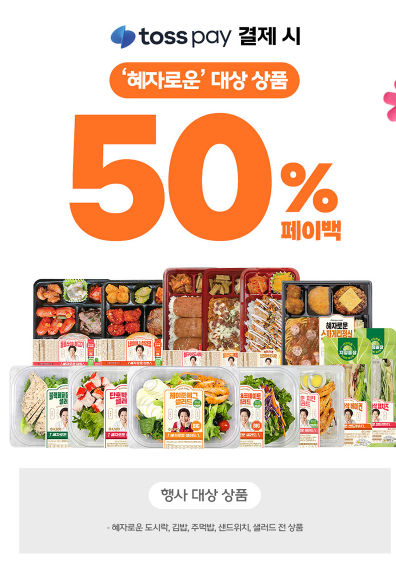토스페이로 GS25에서 도시락, 샐러드, 김밥 등을 구매하면 50% 포인트 페이백을 받을 수 있습니다.